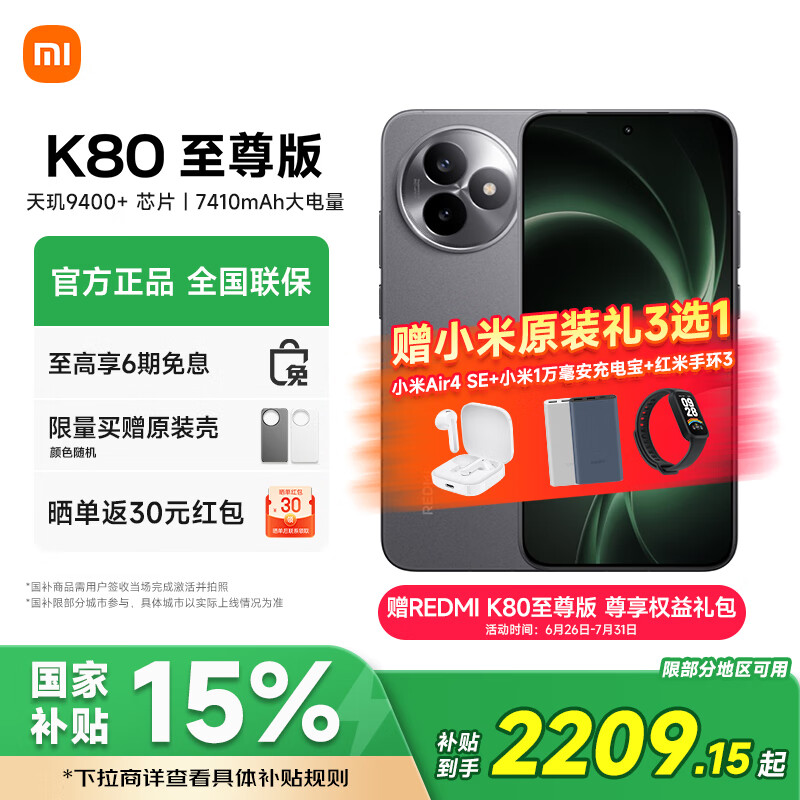 小米REDMI K80至尊版 红米5G手机 新品上市 砂岩灰 12GB+256GB 官方标配