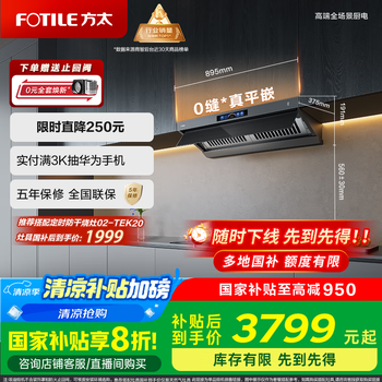 方太(FOTILE)V1S-G抽吸排油烟机 顶侧一体0缝真平嵌 大吸力28风量 国家补贴20% 灰色V1S-G (可搭配燃气灶)