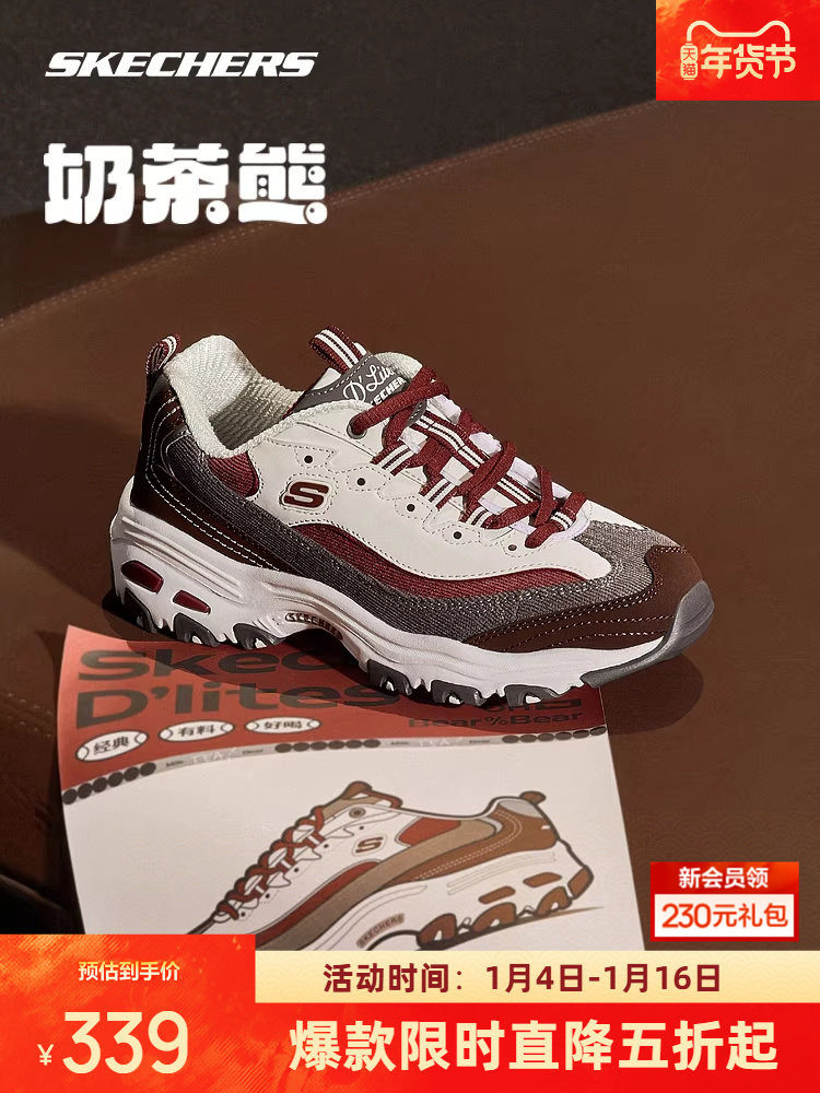 斯凯奇奶茶熊黑糖烤奶新款情侣老爹鞋子男女同款复古运动鞋时尚