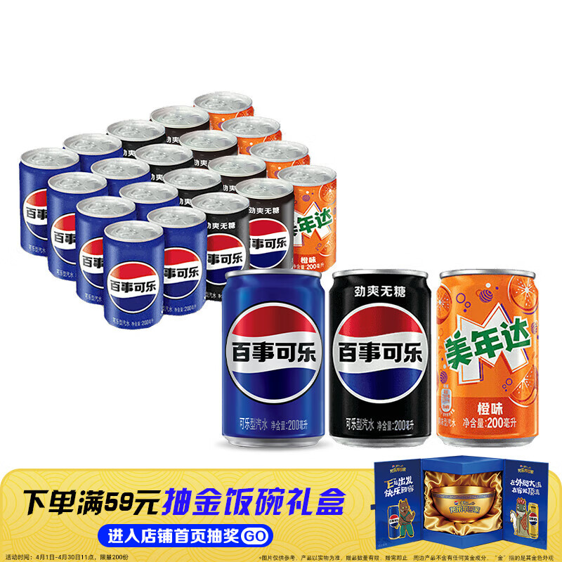 自营百事可乐Pepsi 可乐*8+无糖可乐*8+美年达*4 碳酸饮料 汽水200ml 混合装