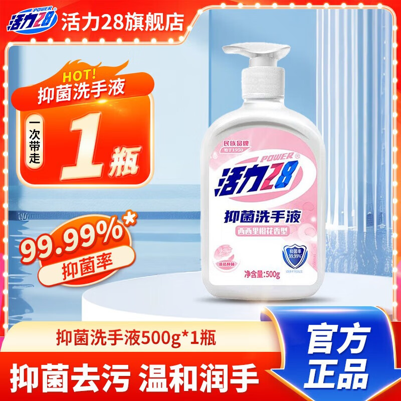 旗舰店活力28抑菌洗手液500g瓶装清香去污温和护肤洗护携带方便家用商用 【西西里橙花】500g*1瓶【体验装】