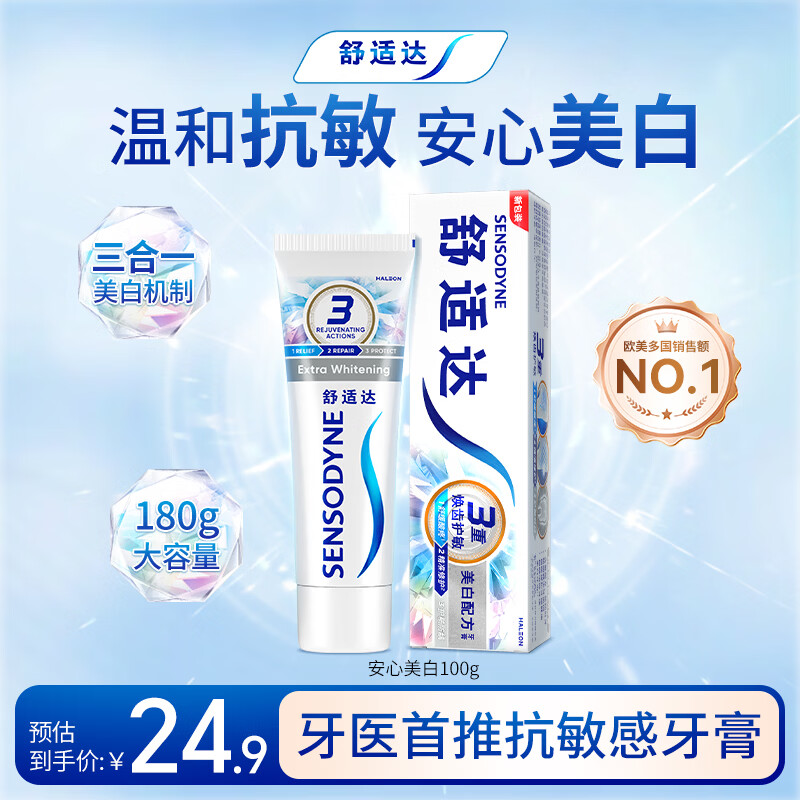 自营舒适达抗敏感美白配方牙膏100g亮白牙齿清新口气去渍抗敏新旧包装随机发