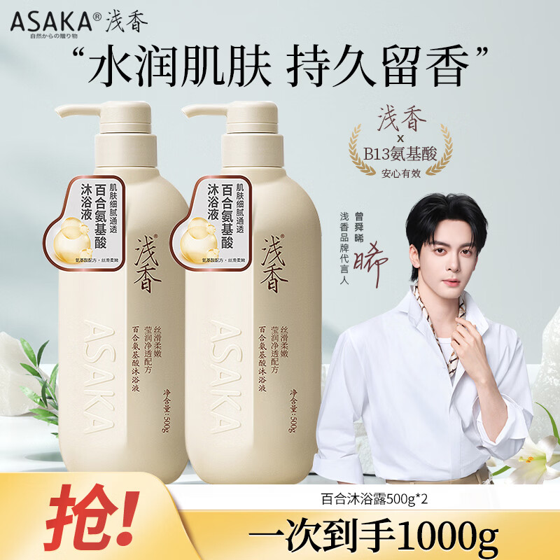 自营浅香(ASAKA)沐浴露香味持久沐浴乳液男女士氨基酸香水香氛洗澡水500g滋润保湿