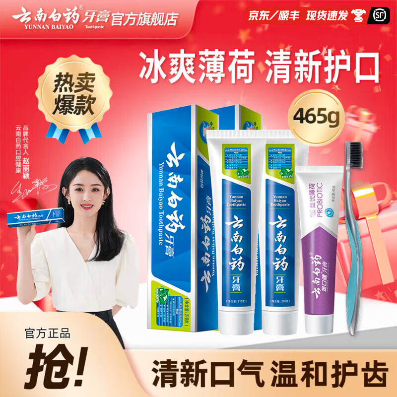 百亿补贴云南白药【赵丽颖推荐】牙膏日用清新夜用护龈清新口气减轻牙龈问题 牙膏 405g*1套 +牙刷1支
