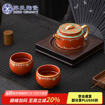 自营苏氏陶瓷(SUSHI CERAMICS)紫砂壶敦煌宝相花一壶二杯陈国再老师作品礼盒装伴手礼父亲节礼物
