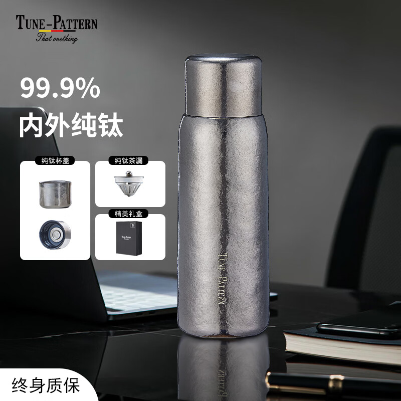 旗舰店TUNE-PATTERN汀派纯钛保温杯高档茶杯户外探索者机械温显纯钛壶大容量便携礼物 450ml【送杯套杯刷】