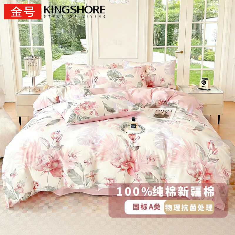 百亿补贴金号100%纯棉被套A类单件抗菌全棉被罩床品套件可机洗学生宿舍三件套 花开【抗菌A类 100%棉】 单被套 150*200cm