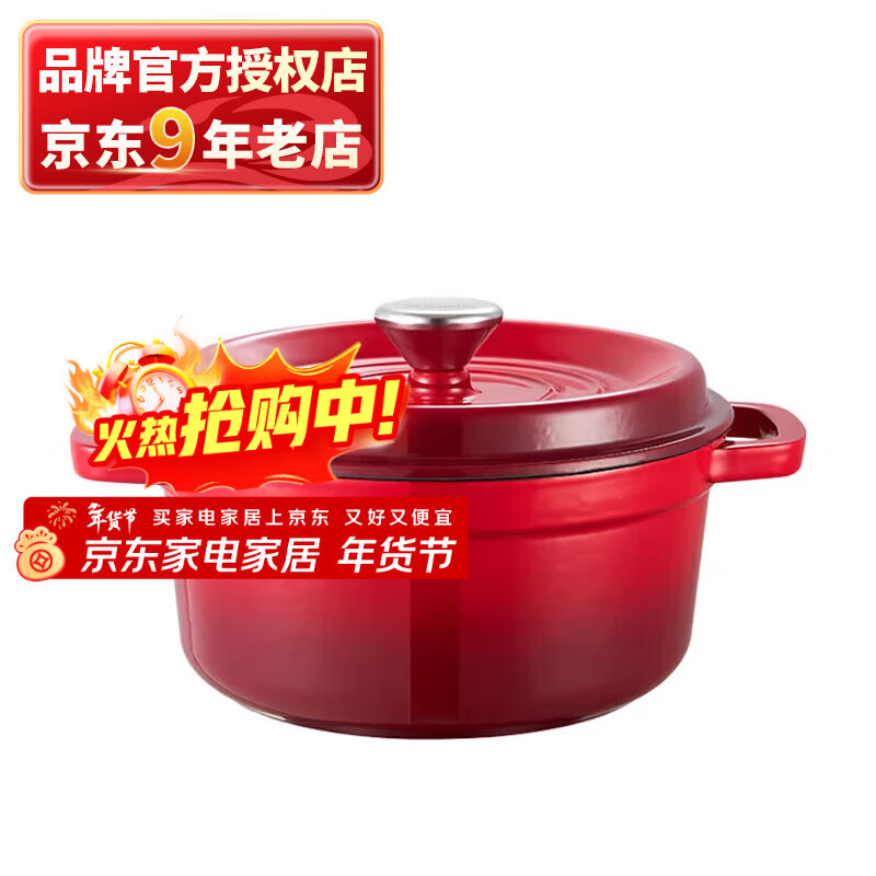 旗舰店康宁餐具 2.8L珐琅铸铁锅汤锅炖锅煮锅 新款红色珐琅锅 22cm