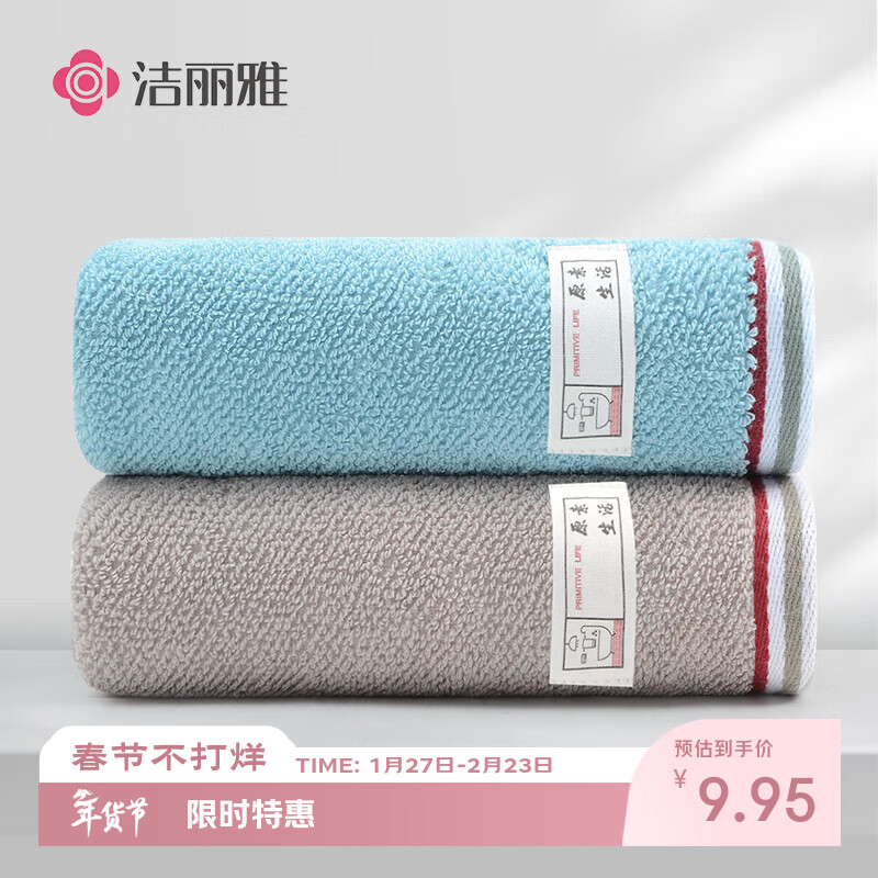 自营洁丽雅(Grace)新疆棉A类纯棉毛巾柔软吸水洗脸擦脸洁面成人毛巾 2条装 兰灰