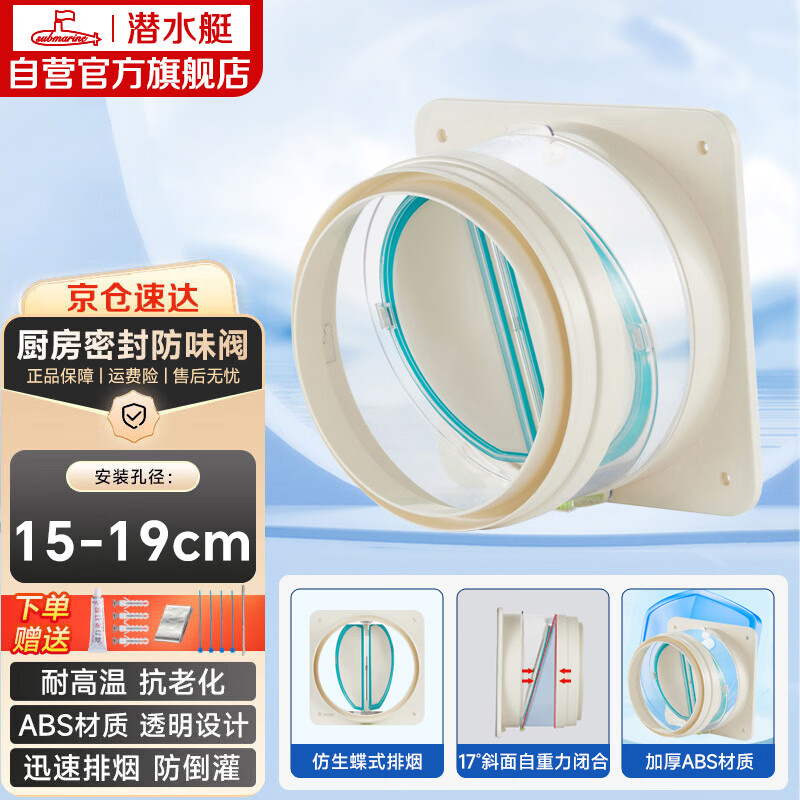 自营潜水艇(Submarine)F160 厨房烟道全密封防味阀 公共烟道止逆阀止回阀 烟道阀