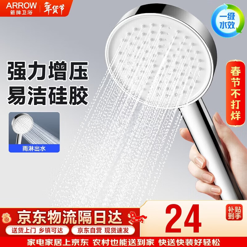 自营箭牌花洒喷头浴室增压淋浴花洒银色出水手持花洒头