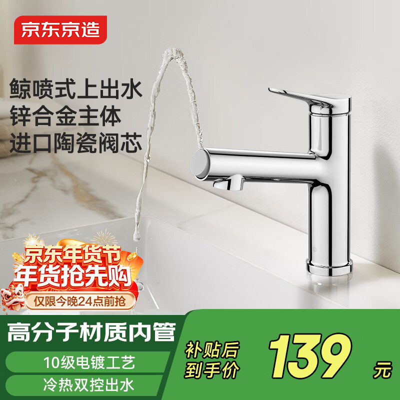 自营京东京造泉涌面盆龙头浴室冷热双控卫生间上出水洗脸漱口电镀镜面锌合金