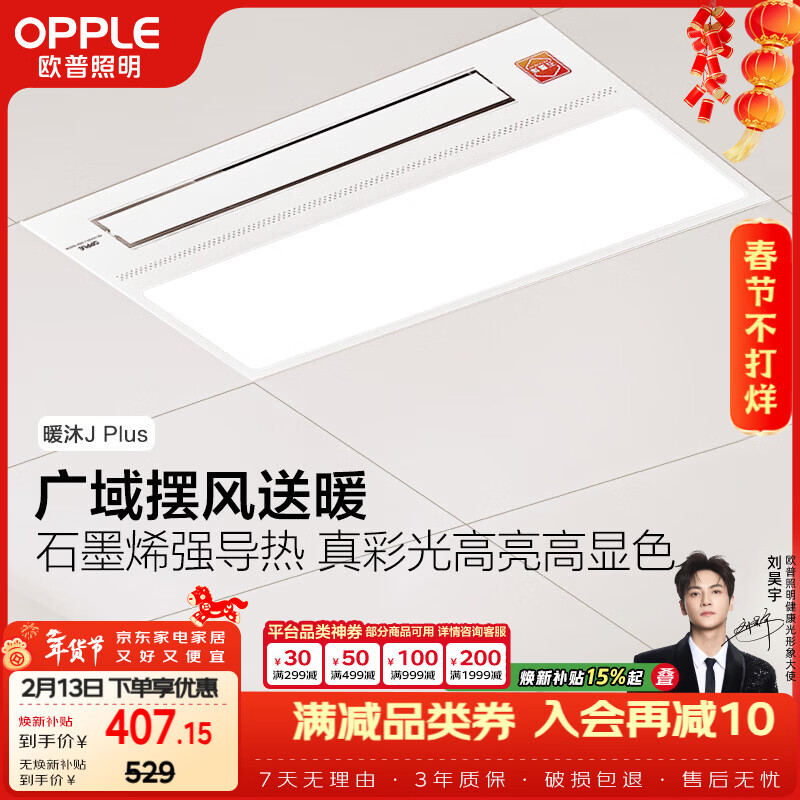 自营欧普照明(OPPLE)风暖浴霸基础暖系列广域摆风速热浴霸超薄多功能合一 暖沐Jplus