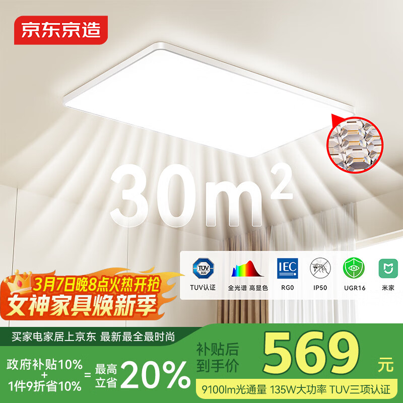 自营京东京造U1 Pro 客厅吸顶灯 全光谱智能护眼灯已接入米家APP