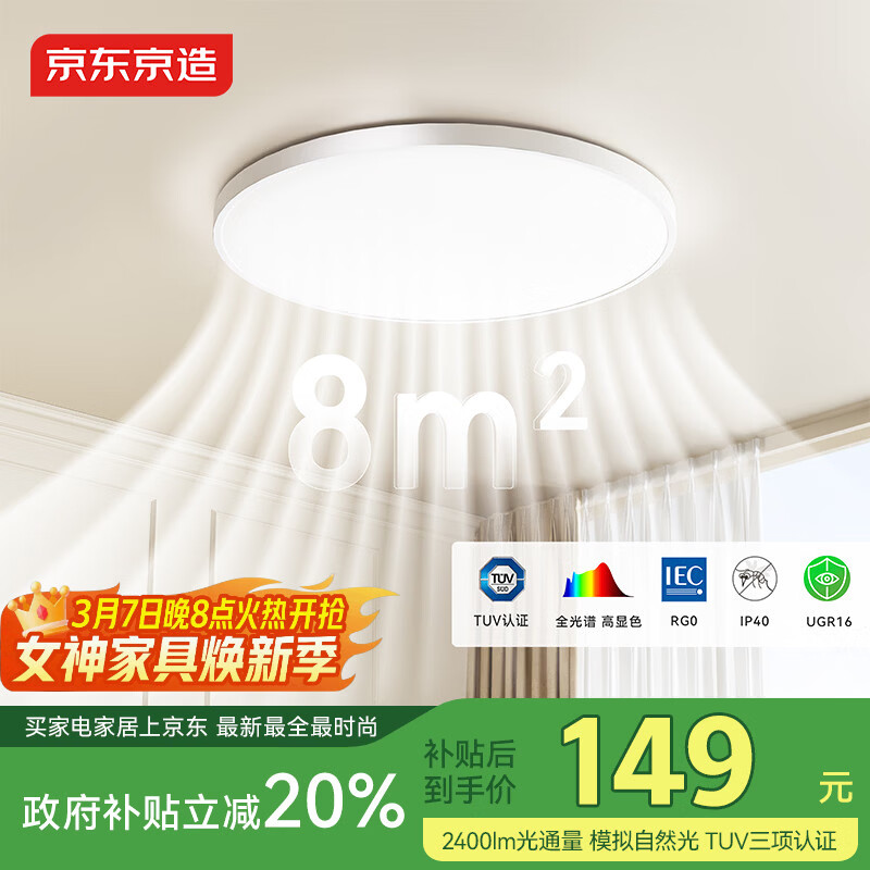 自营京东京造U1 Lite卧室吸顶灯D400 全光谱三防吸顶灯IP40