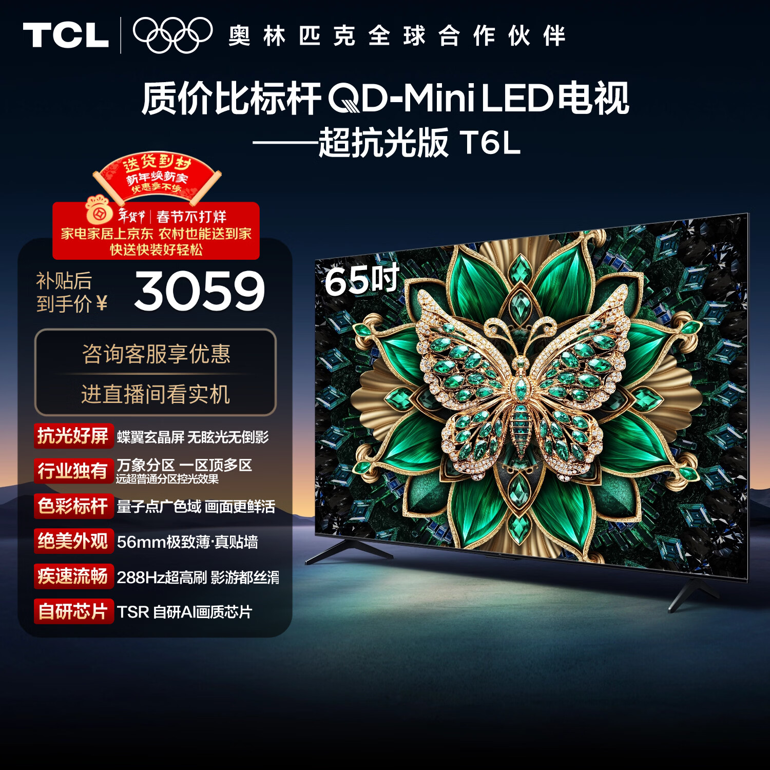 自营TCL电视 65T6L 65英寸 QD-Mini LED 万象分区 量子点 抗反光防眩光 DeepSeek AI电视 国家补贴