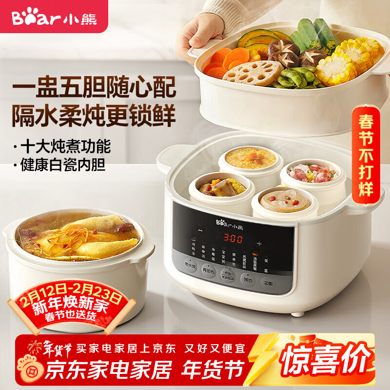 自营小熊(Bear)电炖盅隔水炖汤盅电炖锅燕窝炖盅煲汤炖汤陶瓷全自动家用3-4人炖蒸煮一体多功能锅4.1L DDZ-J25H5