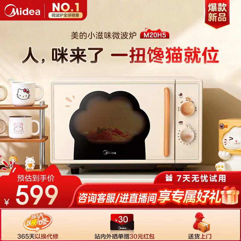 自营美的(Midea)美的小滋味变频平板式微波炉高颜值猫爪萌宠智能家用20L大容量一级能效M20H5