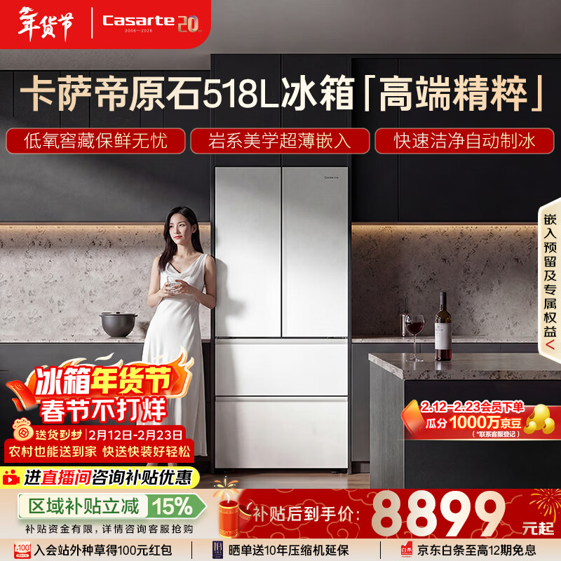 自营卡萨帝(Casarte)原石518L法式多门冰箱MRA PLUS低氧窖藏养鲜自动制冰双系统BCD-518WGCFDMGWUU1 517同款国家补贴