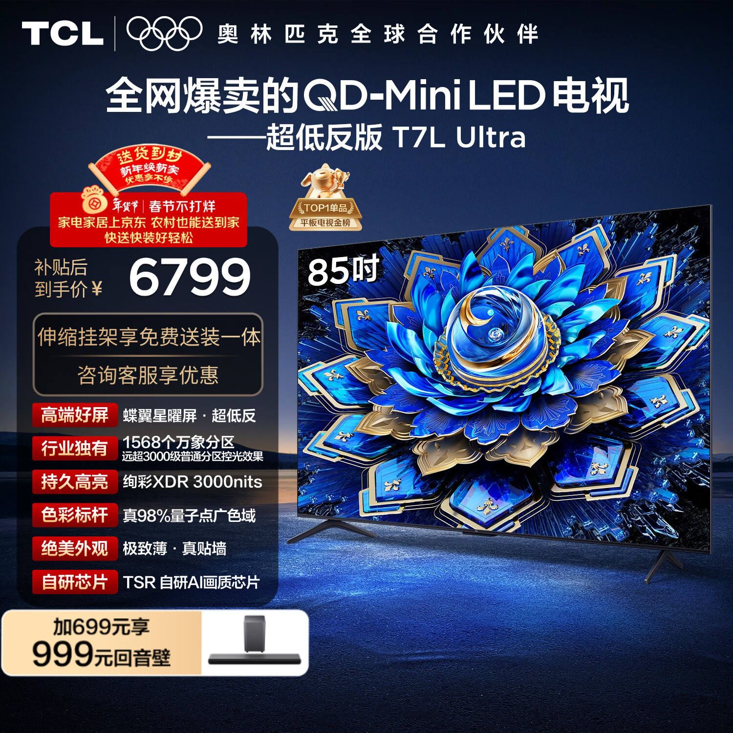 自营TCL 85T7L Ultra 包安装版【伸缩挂架送装一体】85英寸 QD-Mini LED电视 T7L Ultra 国家补贴
