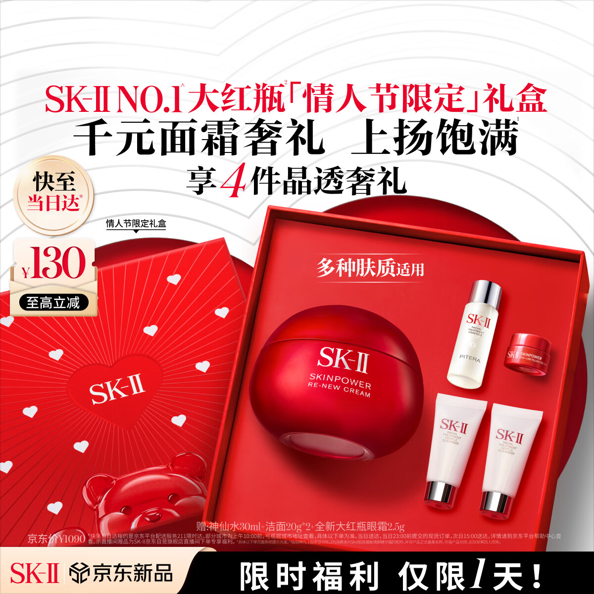 自营SK-II大红瓶面霜50g乳液抗皱紧致化妆护肤品套装礼盒情人节礼物女朋友
