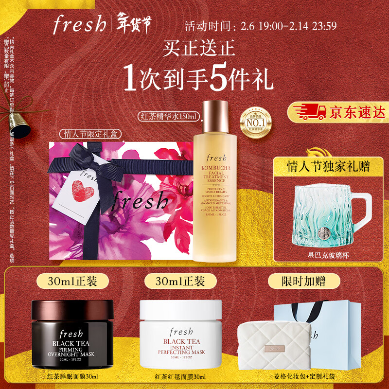 自营Fresh馥蕾诗红茶精华水150ml礼盒(含面膜30ml*2-套内赠)新年情人节礼物