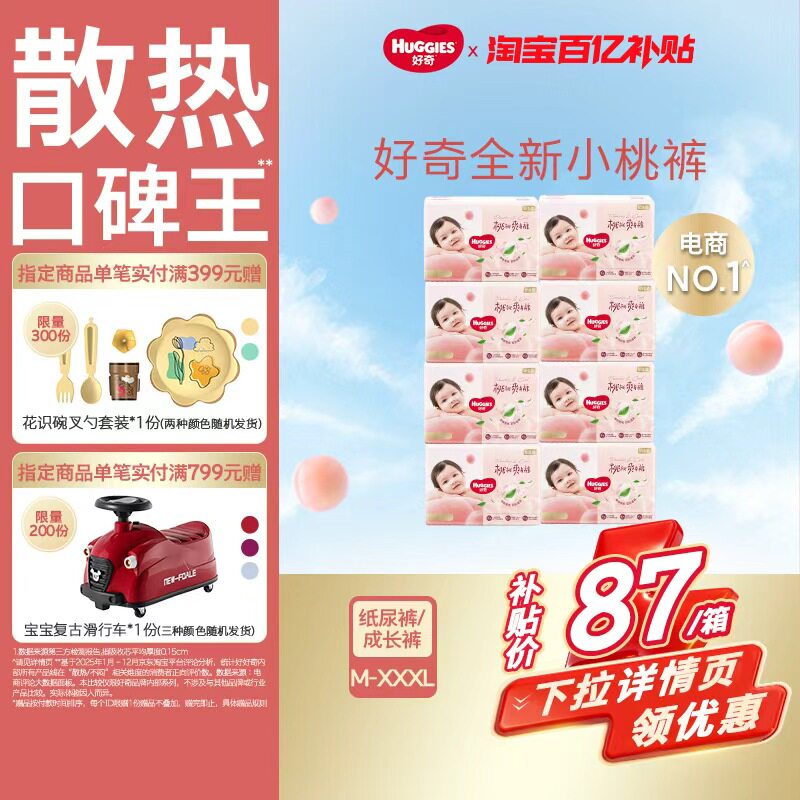 百亿补贴【百亿】好奇小桃裤纸尿裤拉拉裤M-XXXL超薄透气尿不湿4箱装