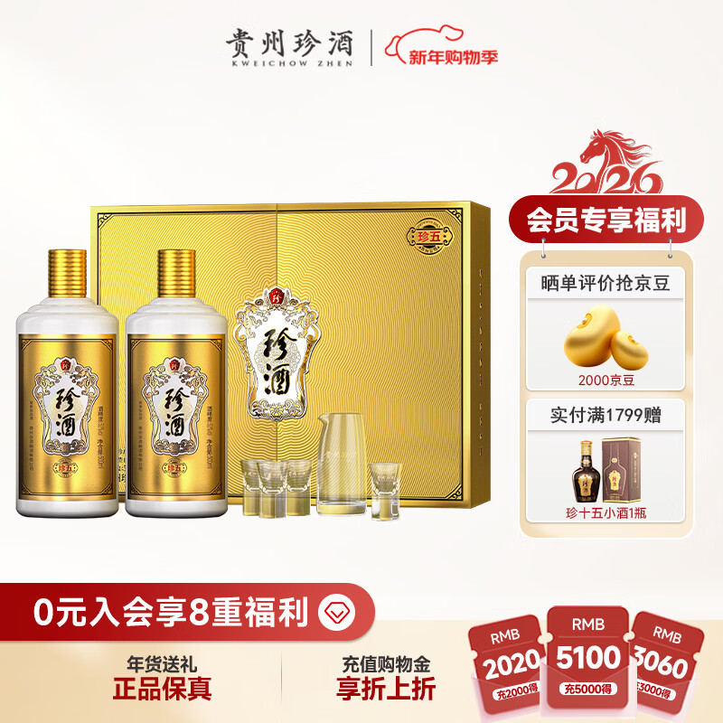 自营珍酒 珍五金 酱香型白酒 53度 500ml*2瓶 礼盒装
