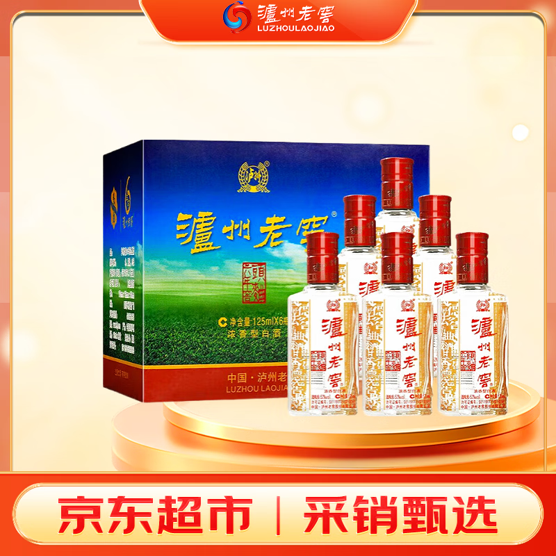 自营泸州老窖六年窖头曲 52度浓香型白酒125mL*6瓶整箱装 纯粮食酒