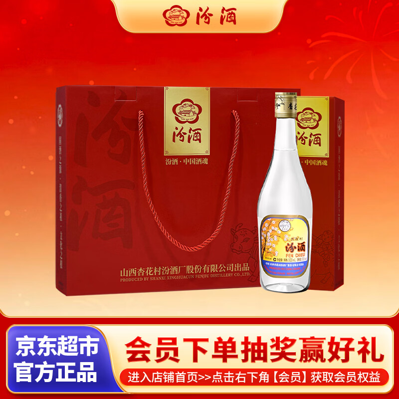 自营汾酒 出口玻汾礼盒 清香型 53度 500ml*4瓶 黄盖铝盖 聚会宴请送礼酒