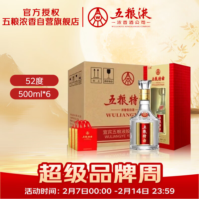 自营五粮液股份 五粮特曲 一代 浓香型白酒 52度 500ml*6瓶 整箱原箱装