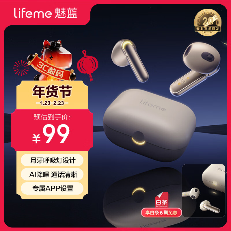 旗舰店lifeme魅蓝 Blus E半入耳式蓝牙耳机 呼吸灯显+50ms低延迟 蓝牙5.4双设备连接 清晰通话适用魅族苹果华为 blusE(半入耳舒适佩戴)