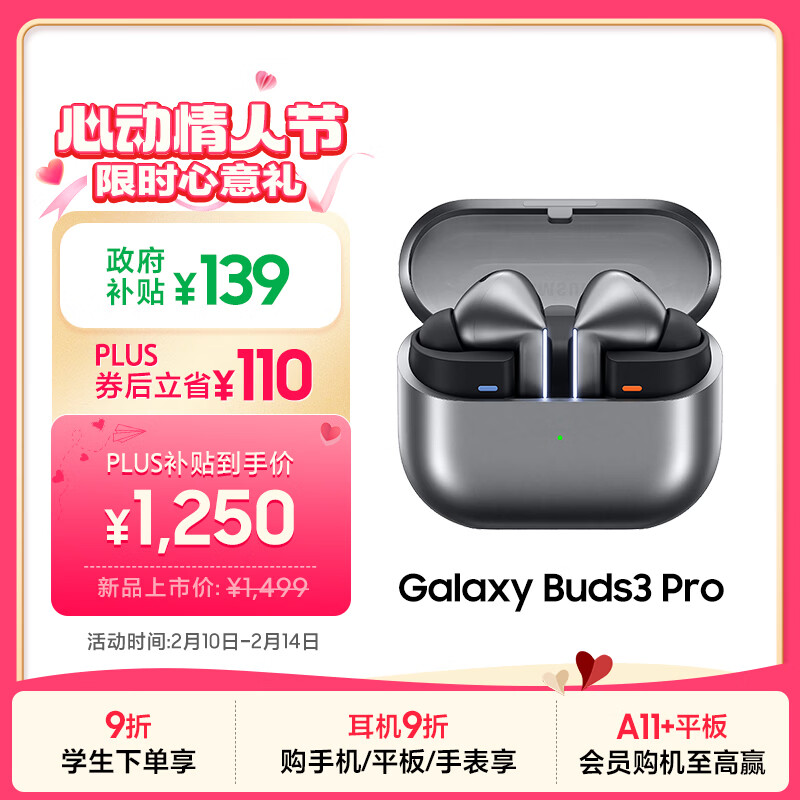 自营三星 Samsung【政府补贴】Buds3 Pro 自适应主动降噪无线蓝牙耳机/翻译耳机 星际银【情人节礼物】