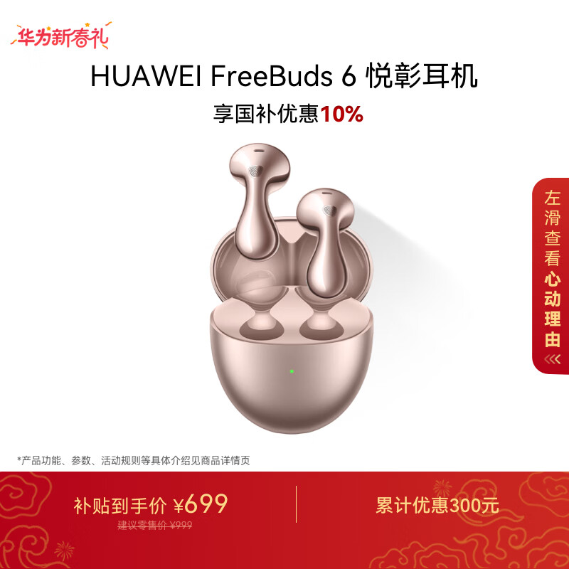 自营华为FreeBuds 6 悦彰耳机 国家补贴 蓝牙半开放式耳机 双向静谧通话 翻译功能 水滴耳机 玫瑰金