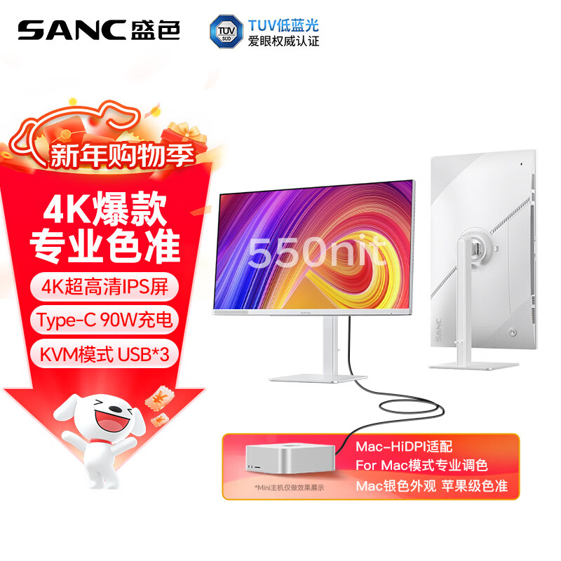 自营SANC盛色27英寸4K超清IPS专业设计显示器Type-C90W 100%sRGB10Bit HDR400认证TUV低蓝光爱眼OF27UT Pro