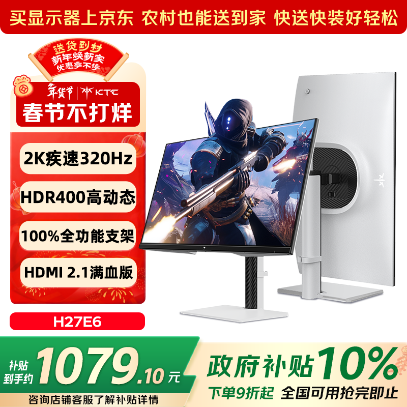 自营KTC27英寸2K疾速320Hz 450nit FastIPS Switch2外接 原生300Hz显示屏升降旋转显示器H27E6