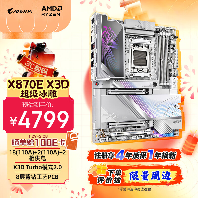 自营技嘉(GIGABYTE)超级冰雕X870E AORUS MASTER X3D ICE主板DDR5支持AMD CPU AM5 9700X 9950X 9900X 9600X