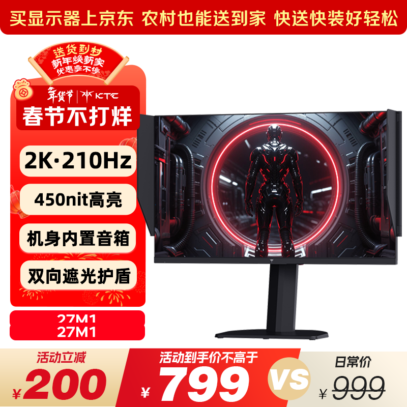 自营KTC 27英寸2K高清210Hz显示屏HDR450nit原生200Hz内置音箱 硬件低蓝光 升降旋转显示器大师27M1