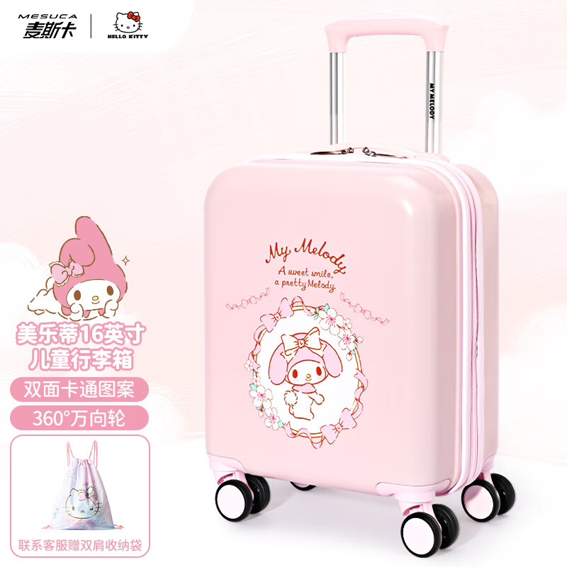 自营麦斯卡三丽鸥联名儿童行李箱美乐蒂女童拉杆箱拉链行李箱16英寸小行李箱