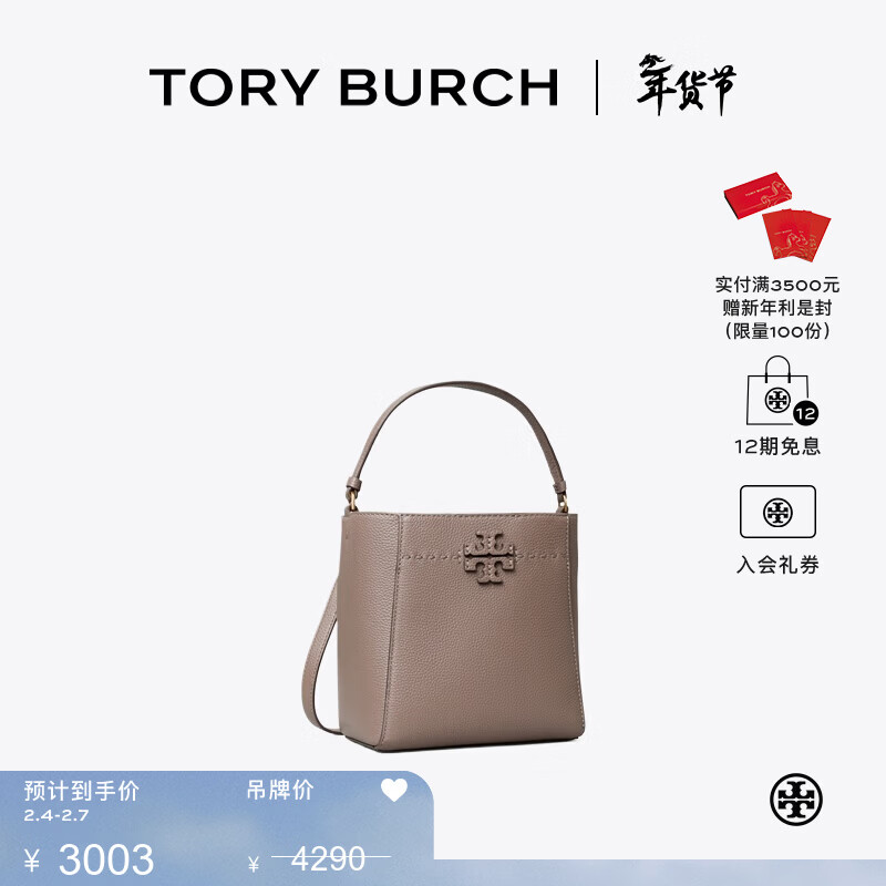 旗舰店Tory Burch 汤丽柏琦【新年礼物】MCGRAW小号水桶包菜篮子TB 74956 灰色 963 OS