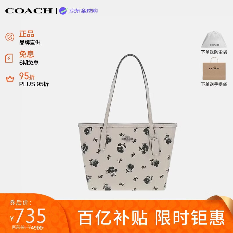 自营蔻驰(COACH)【品牌直供】奢侈品女包CITY23通勤托特包白垩彩CBL04 情人节礼物