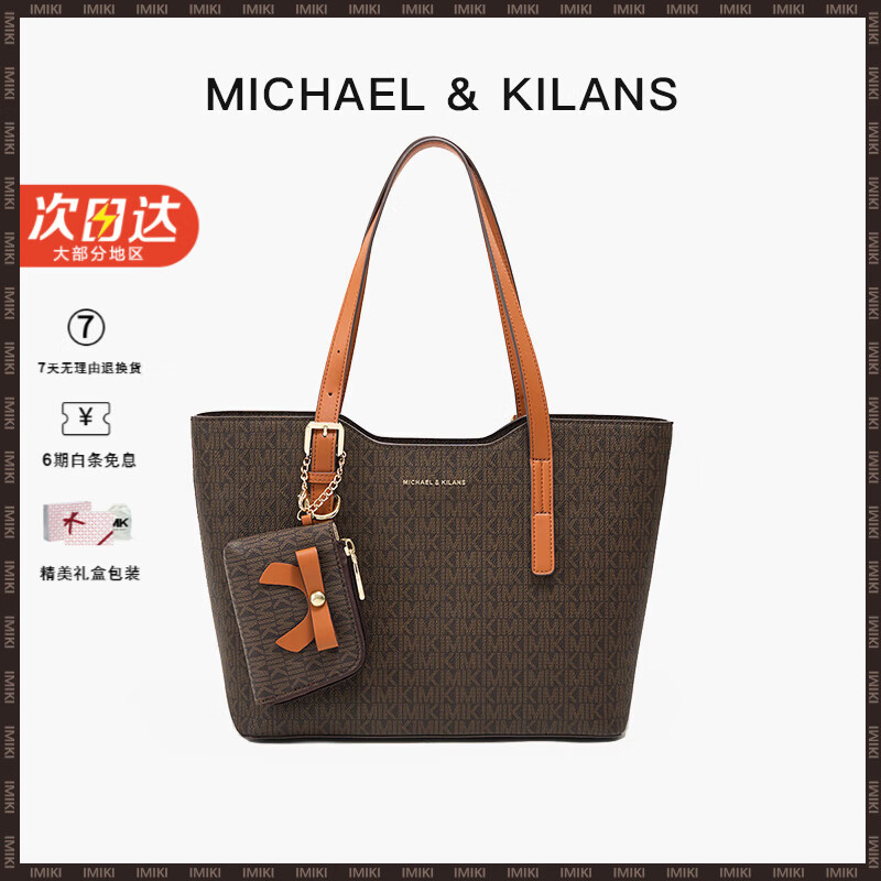 旗舰店MK轻奢包包女包单肩包手提包大容量托特包情人节生日礼物送女友老婆 咖啡色(礼盒装)