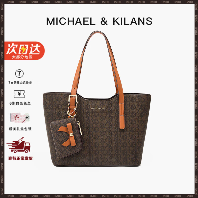 旗舰店MK轻奢包包女包单肩包手提包大容量托特包新年情人节礼物送女友老婆 咖啡色(礼盒装)