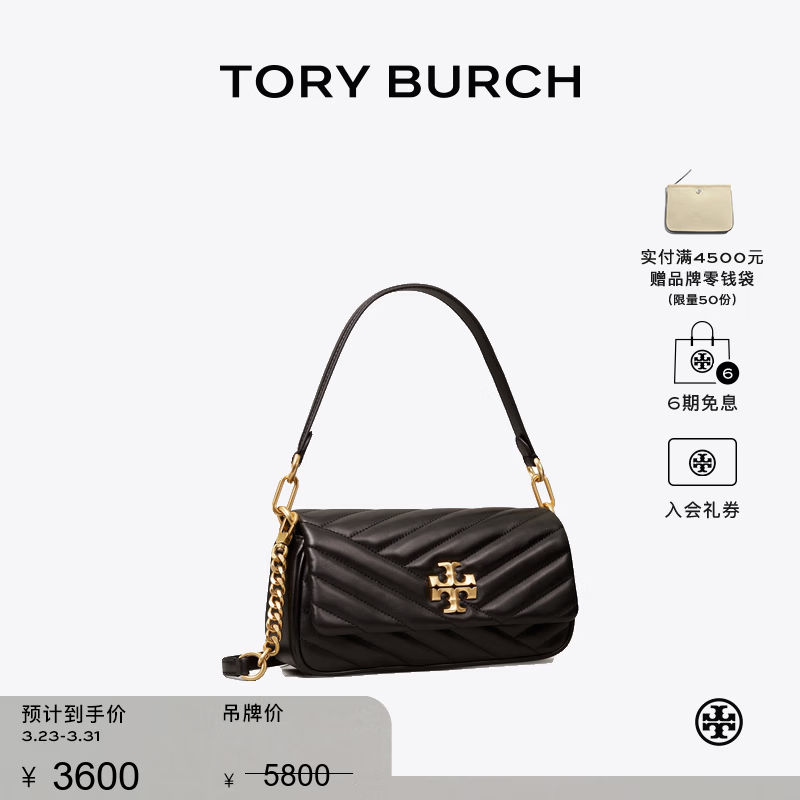 旗舰店Tory Burch 汤丽柏琦【线上专享】KIRA 小号绗缝翻盖肩背包女包TB 90456 黑色 001 OS