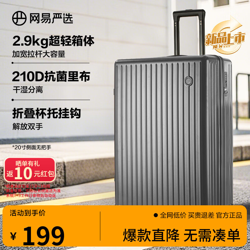 自营网易严选超轻大容量行李箱耐磨出差拉链拉杆箱暗影灰20英寸 【可登机】