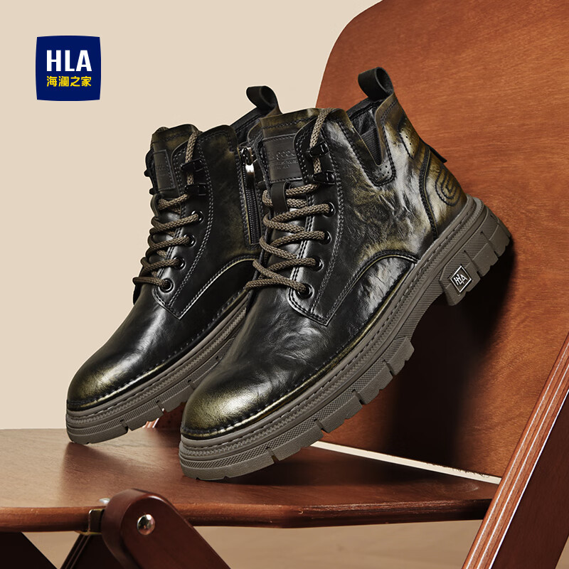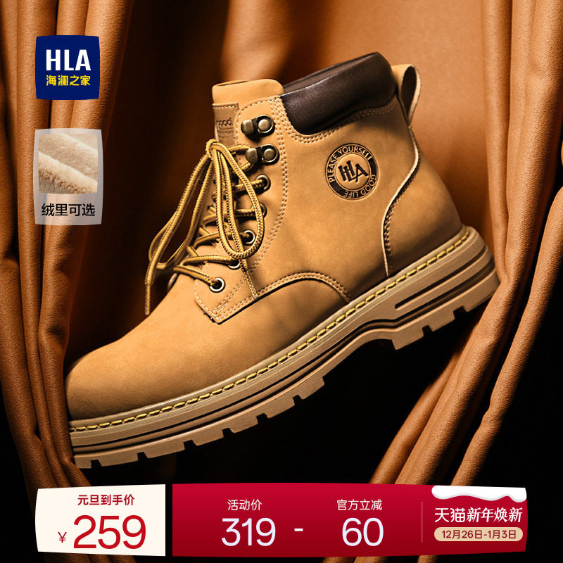 旗舰店HLA/海澜之家男鞋新款冬季户外高帮休闲大黄靴加绒工装靴马丁靴男