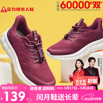 自营足力健老人鞋中老年轻便休闲散步鞋2431380J 女 酒红 38