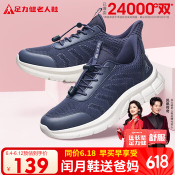 自营足力健老人鞋中老年春秋季健步轻便软底送爸爸休闲散步鞋2431369J 蓝-男款 38