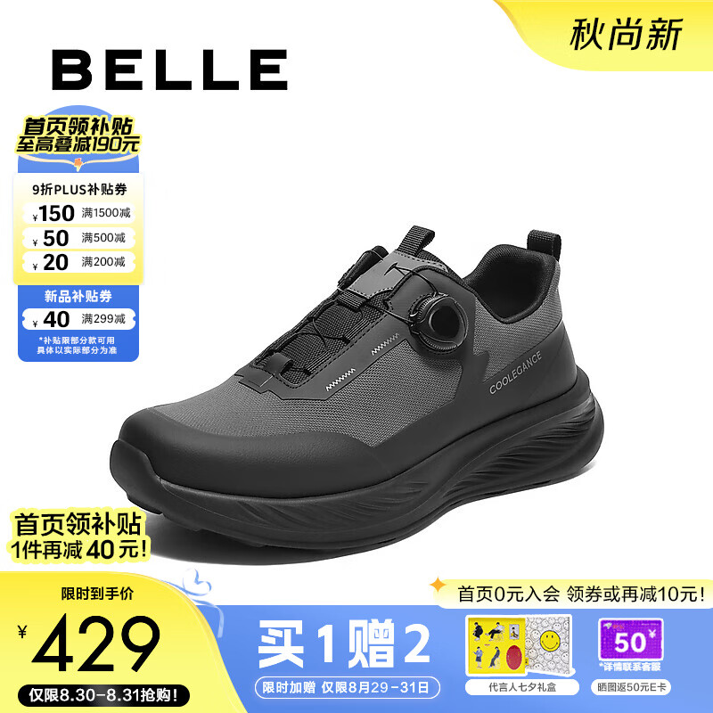 旗舰店百丽七夕礼物厚底健步鞋男25秋新简约户外潮搭运动鞋A2048CM5【预售】 灰色 42 (260mm)