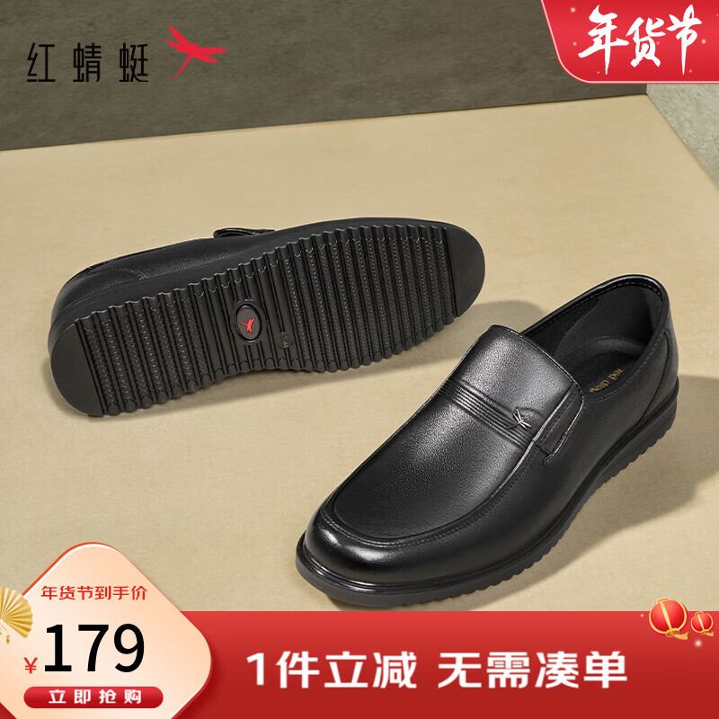 旗舰店红蜻蜓男鞋秋季新款男士商务皮鞋休闲低帮爸爸鞋通勤男鞋WTA45078 黑色 42
